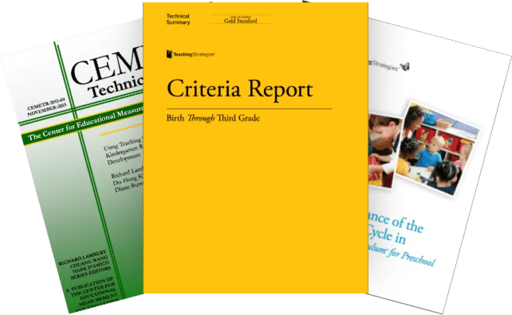 Burts, D. C., & Kim, D. H. (2014). The teaching strategies GOLD assessment system: Measurement properties and use. NHSA Dialog, 17(3), 122-135.